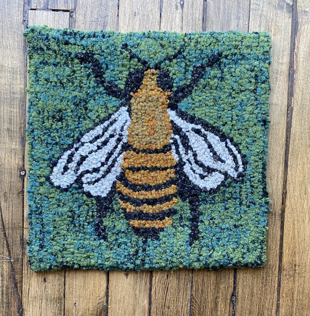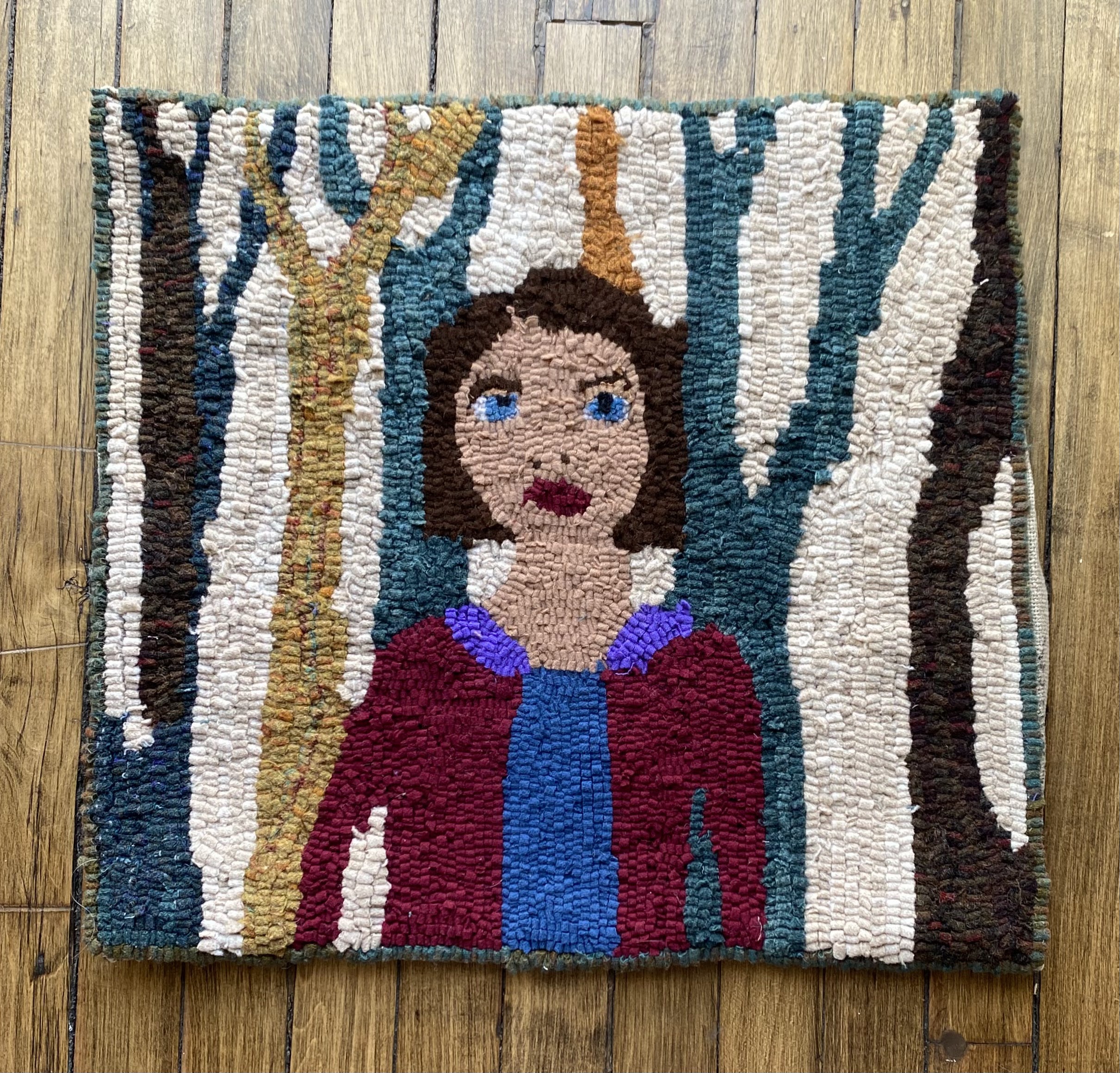 This past spring primitive rug hooking, which some consider a craft and some a fine art found it’s way to me and I was hooked. For me, I found that it desired some real focus and attention, not like knitting where you can watch TV while knitting away. Hooking asks for you to concentrate on each loop, which made it slow going at first. I started with a smaller design of a bee so I could get an idea of how to actually learn how the hooking process went. The second time I got more ambitious with my girl in the woods. I may have been a bit too enthusiastic hooking an actual face on my second go, but all in all I’m pretty happy with how the piece came out. I am looking forward to seeing where this wandering around in primitive rug hooking will take me.
